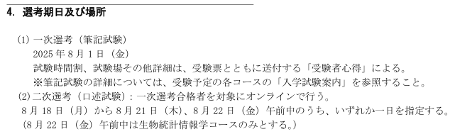 例として、2025年度の入試スケジュールを上記に挙げています。